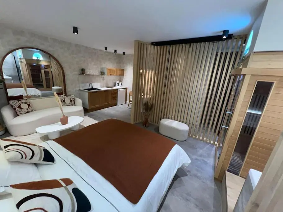 Un espace bien-être avec sauna et spa privatif est également accessible pour un moment de détente.