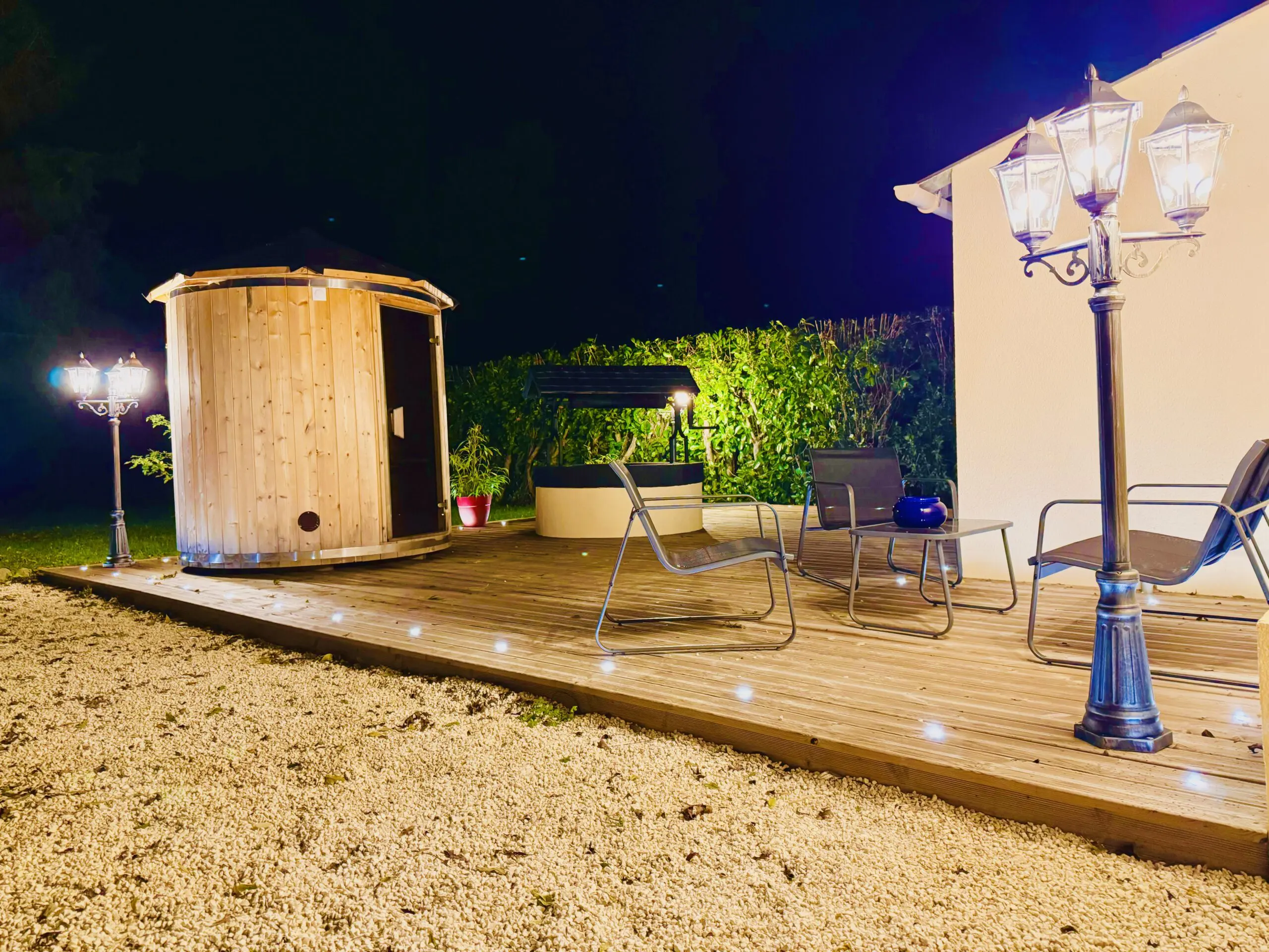 sur la terrasse, un sauna privatif vous attend, parfait pour des instants de relaxation en toute sérénité.
