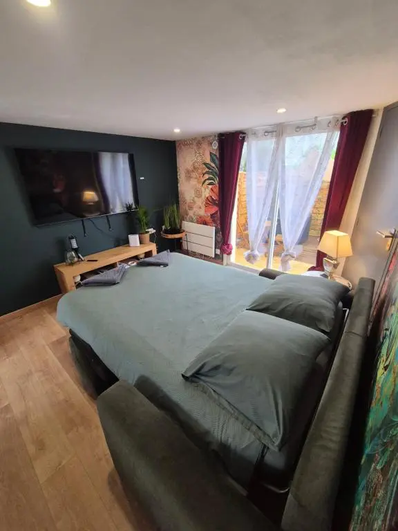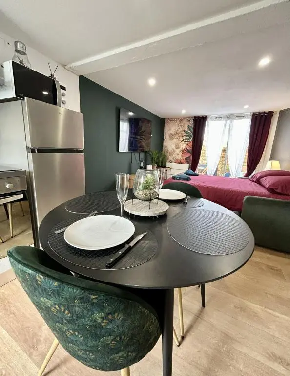 L’appartement se compose d’une chambre, d’une salle de bains, d’un coin repas, d’une cuisine entièrement équipée, ainsi que d’une terrasse donnant sur le jardin. Il dispose également d’une télévision à écran plat avec chaînes câblées, de linge de lit et de serviettes.