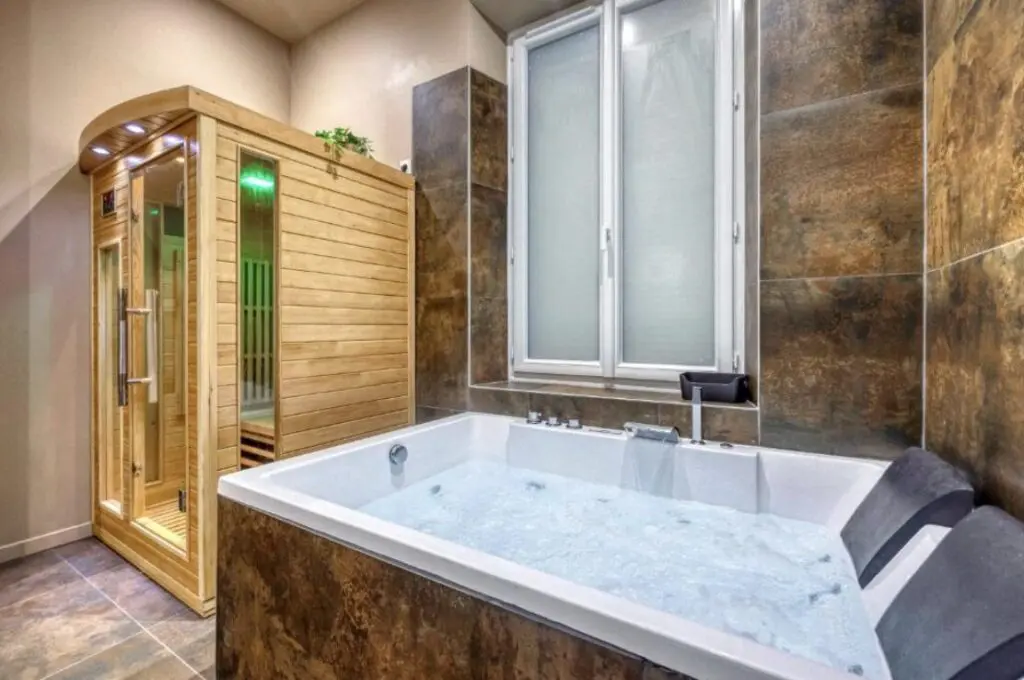 Un sauna et une baignoire à jets complètent les équipements bien-être du logement.