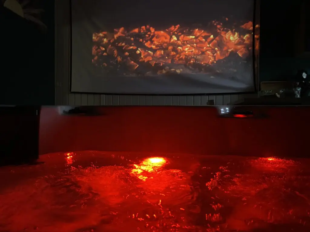 L’espace bien-être comprend un spa privatif 5 places avec LEDs intégrées et vidéoprojecteur, pour visionner vos films ou séries préférés (Netflix, Amazon Prime, YouTube).