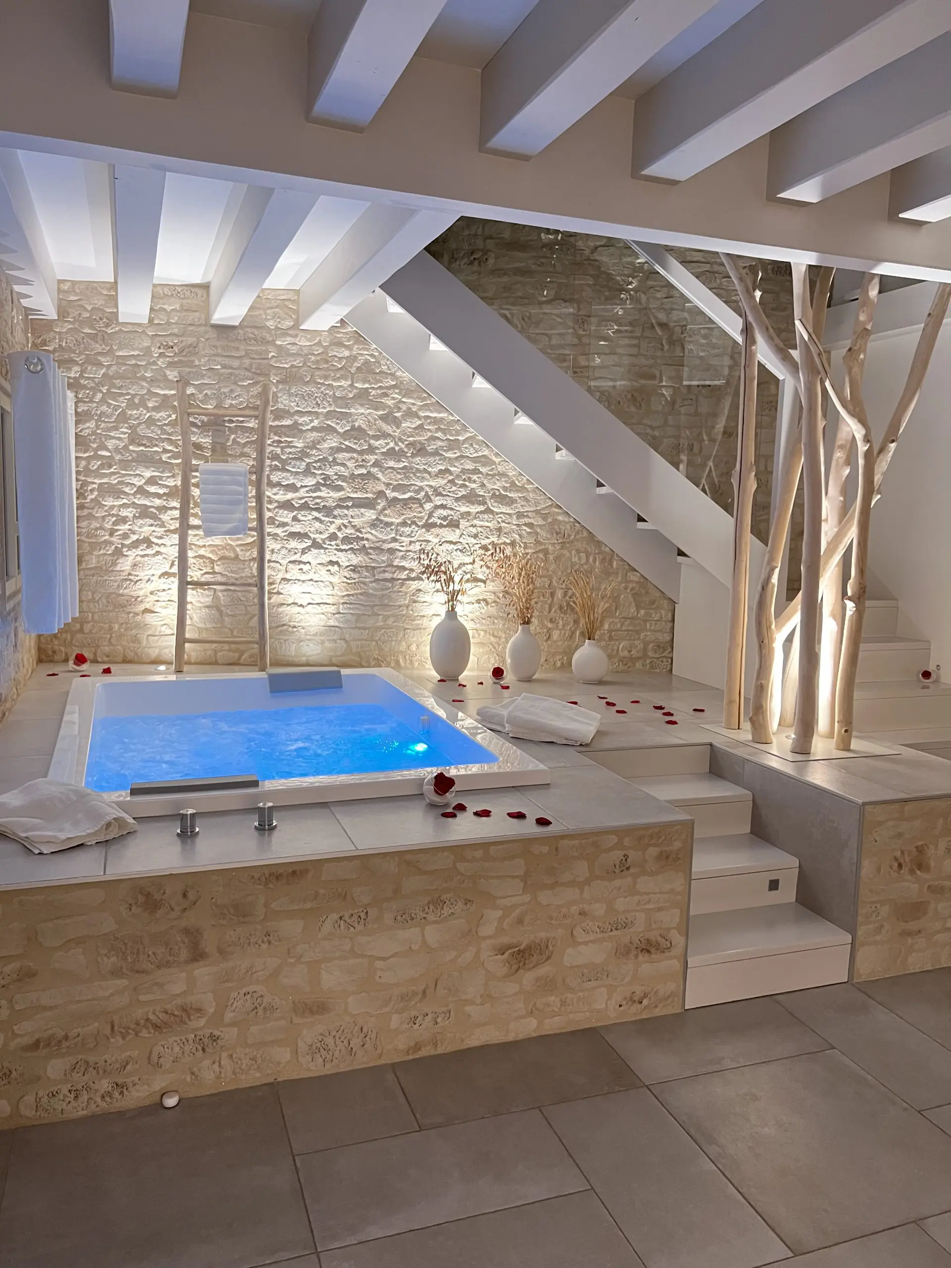 La Suite Romantique dispose d'un spa privatif, parfait pour une détente profonde. Profitez également des bienfaits du sauna finlandais Tylö, reconnu pour ses vertus relaxantes et revitalisantes.