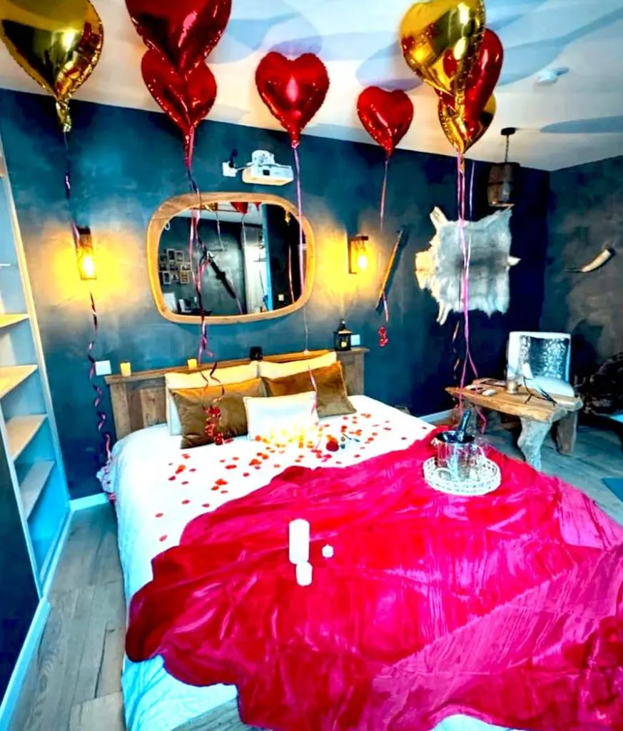 🖤 Une parenthèse romantique inspirée des paysages scandinaves : une décoration soignée, une ambiance douce et apaisante, une bouteille de champagne à portée de main… tout est pensé pour favoriser la complicité et créer des souvenirs mémorables.